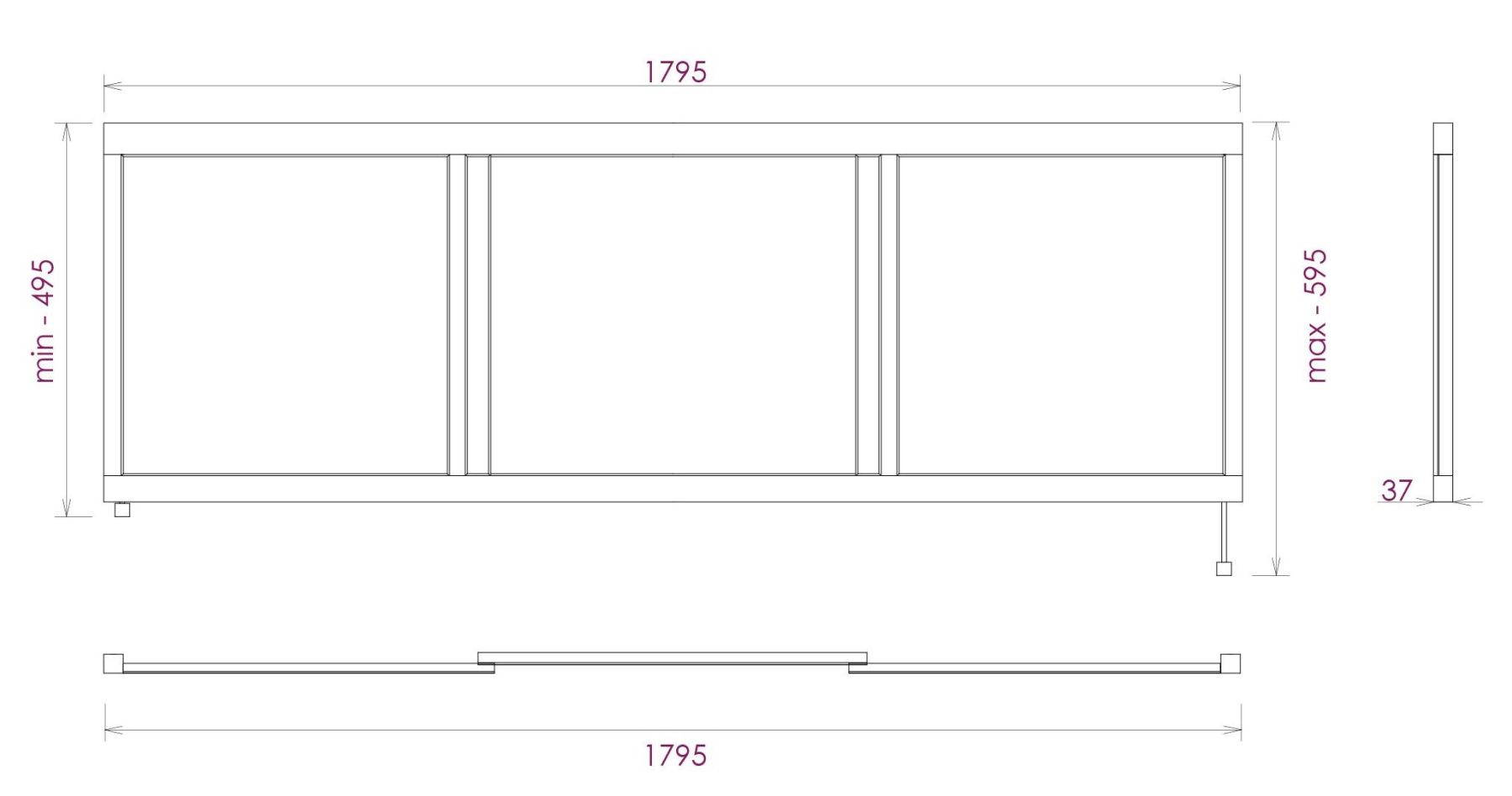Ножки позволяют регулировать экран по высоте от 52 до 60 см, благодаря этому экран является универсальным и впишется в интерьер любой ванной комнаты.