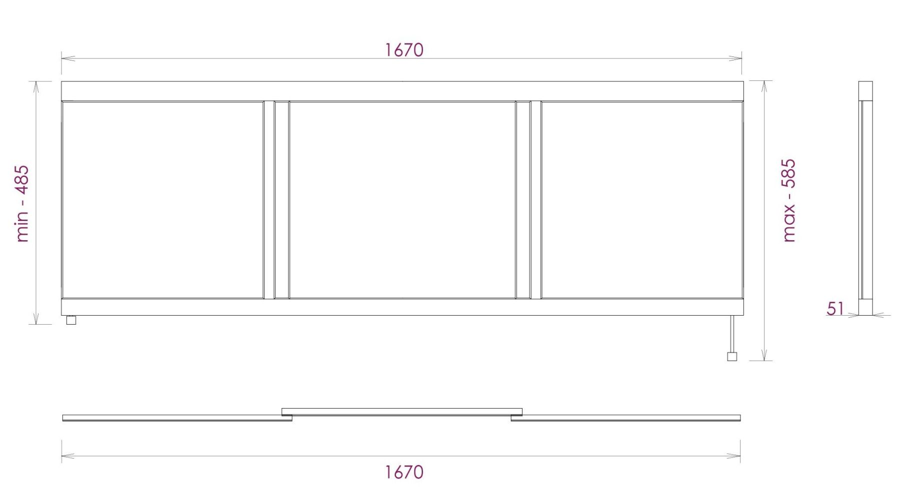 Ножки позволяют регулировать экран по высоте от 52 до 60 см, благодаря этому экран является универсальным и впишется в интерьер любой ванной комнаты.