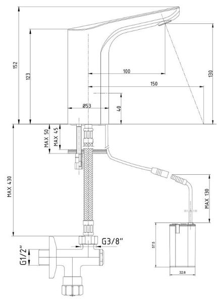 Электронный смеситель для раковины E.C.A. Luna 108108051EX хром
