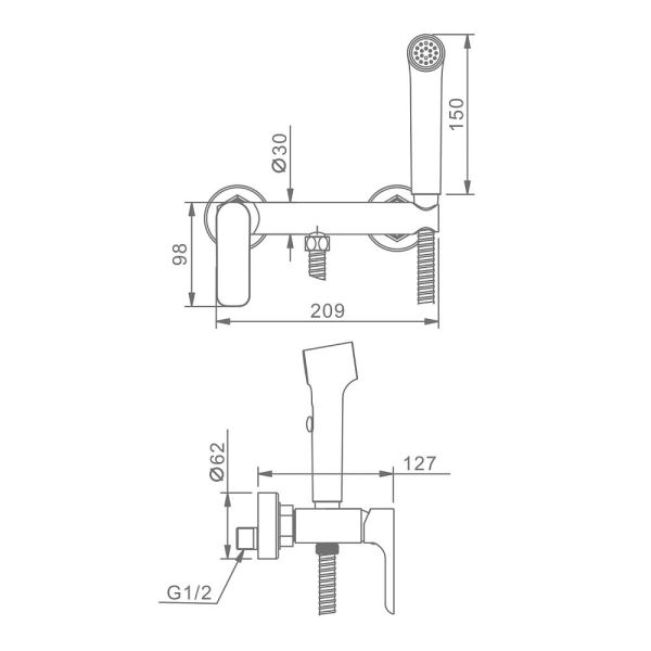 Гигиенический душ со смесителем Raglo R03.51.09, графит