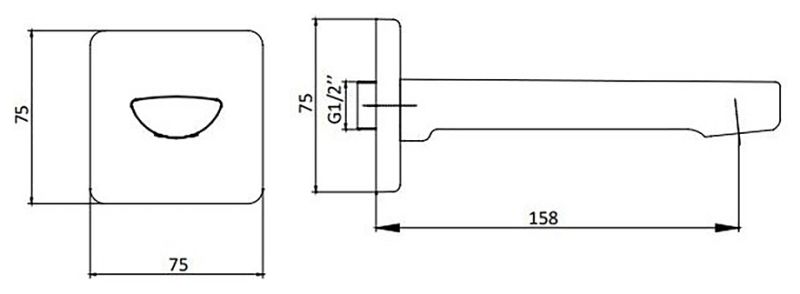 • Длина излива: 158 мм