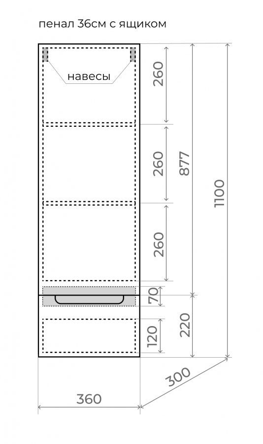 - Колонна подвесная (ш/г/в): 360x300x1100 мм