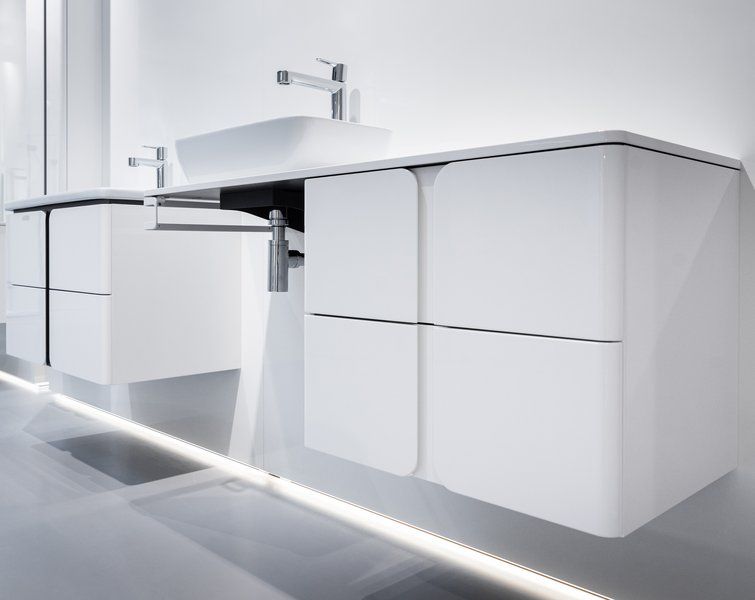 Если столешница размещена над подвесной тумбой с одной стороны, необходимо с другой стороны дополнительная поддержка с помощью консоли Balance / Comfort 1200. Под столешницей также можно прикрепить полотенцедержатель Balance.