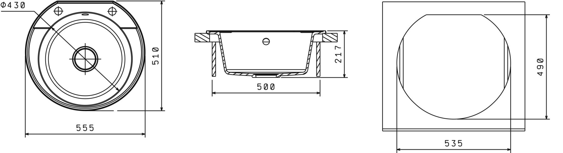 - Отверстия под смеситель:нет
