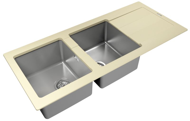 Врезная комбинированная мойка Florentina Комби 1160 сделана из искусственного камня и нержавеющей стали толщиной металла 1 мм.