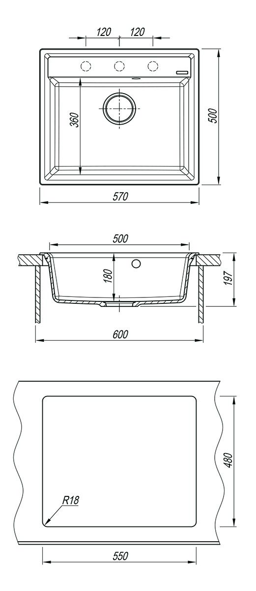 Все модели моек оснащены комплектами сливной арматуры с переливами и сифоном для подключения посудомоечной или стиральной машины, а также крепежом для монтажа к столешнице.