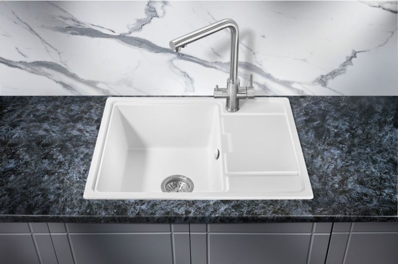 Красивое исполнение каменной раковины дополняют прочные износостойкие материалы высочайшего европейского качества: в составе присутствуют кварцевый песок (кварц) и полимерные смолы, которые делают продукт устойчивым перед любыми воздействиями — механическими, химическими, температурными, световыми. Это значит, что кварцевая мойка не боится царапин и абразивов, кипятка и горячей посуды, ударов, бытовой химии. Она не впитывает жир и грязь, не выцветает и не деформируется со временем, а сохранит первоначальный вид на весь срок эксплуатации. При этом за ней легко ухаживать: пятна убираются самыми простыми чистящими средствами. Еще один большой плюс — на поверхности не остаются отпечатки пальцев.