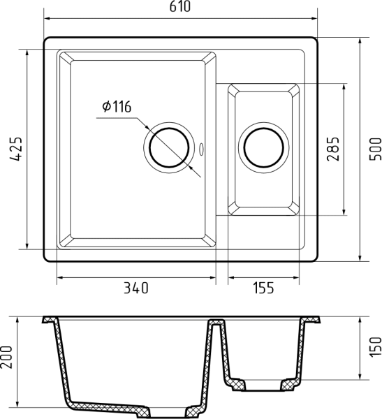 Мойка кухонная GranFest CLASSIC Q-610K топаз
