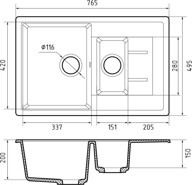Общий размер: 765 * 495 мм