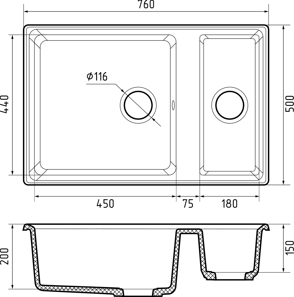 Мойка кухонная GranFest LEVEL LV-760K графит