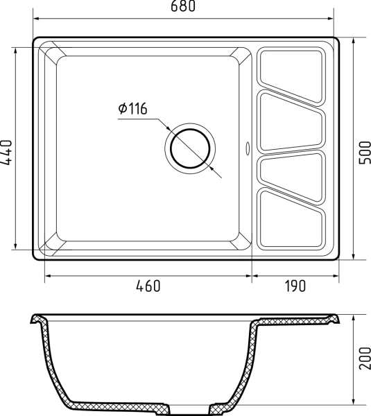 Мойка кухонная GranFest VERTEX V-680L черный