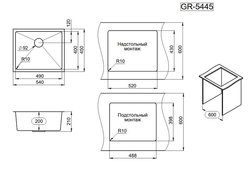 Мойка кухонная Granula 5445U, ЗОЛОТО САТИН