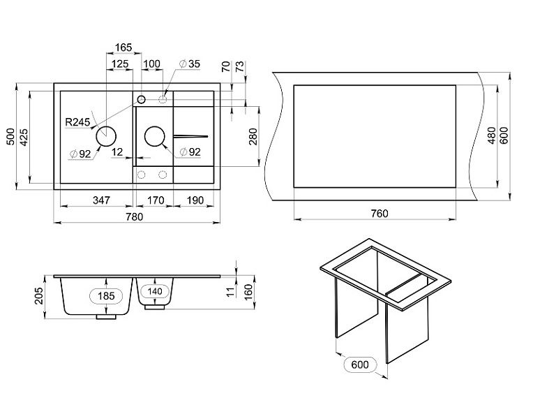Мойка кухонная Granula 7802, ЧЁРНЫЙ