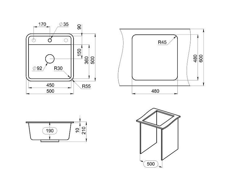 Размер чаши, мм