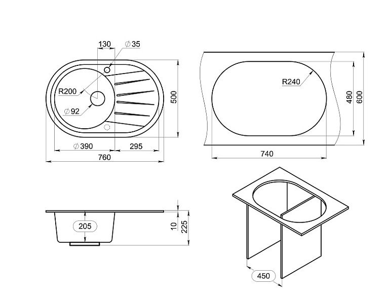 Мойка кухонная Granula Standart 7601, БАЗАЛЬТ