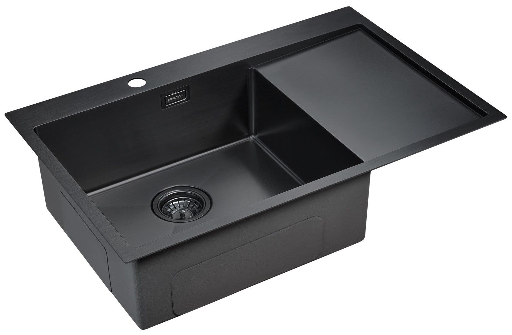 Мойка кухонная Paulmark Elde PM807851-GML левая воронёная сталь купить