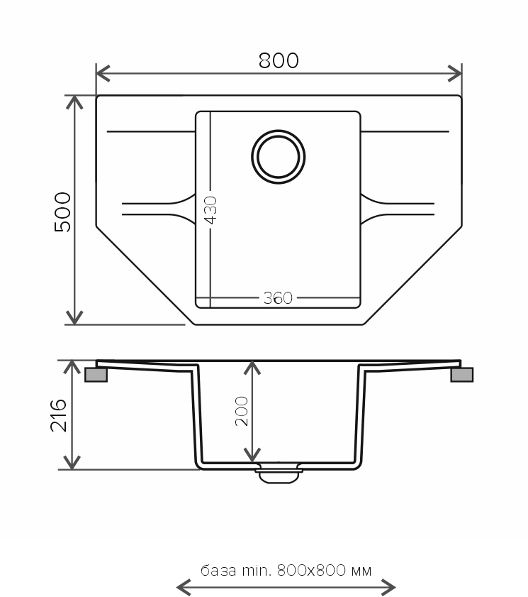 Мойка кухонная Polygran RIFF-800 серый 679061