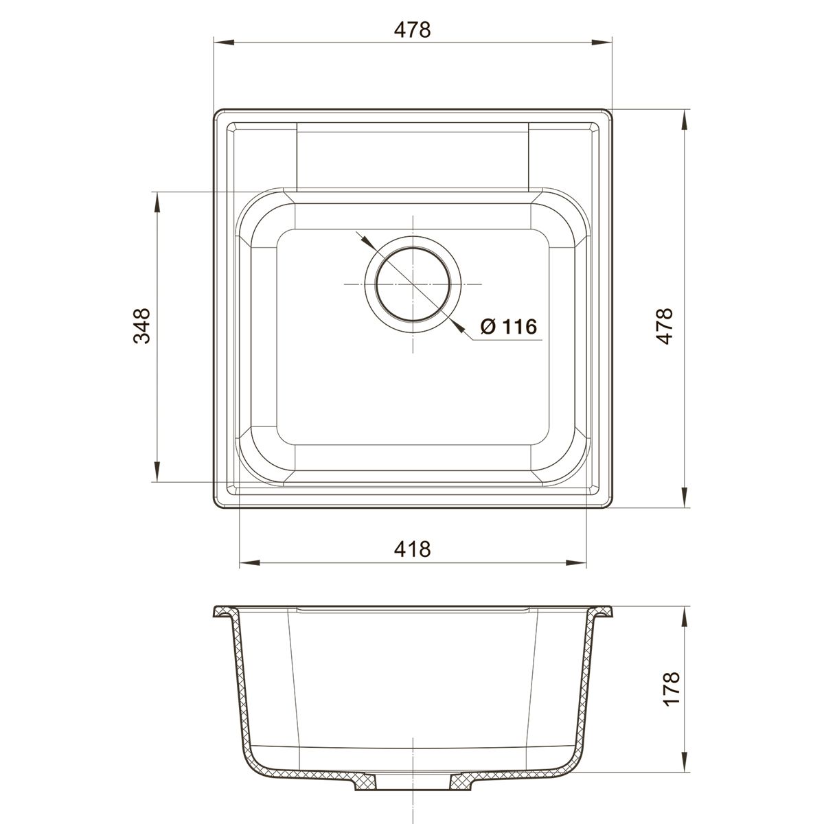 Удобная вместительная мойка подходит для установки как в угловой шкаф кухни, так и в прямые модули.