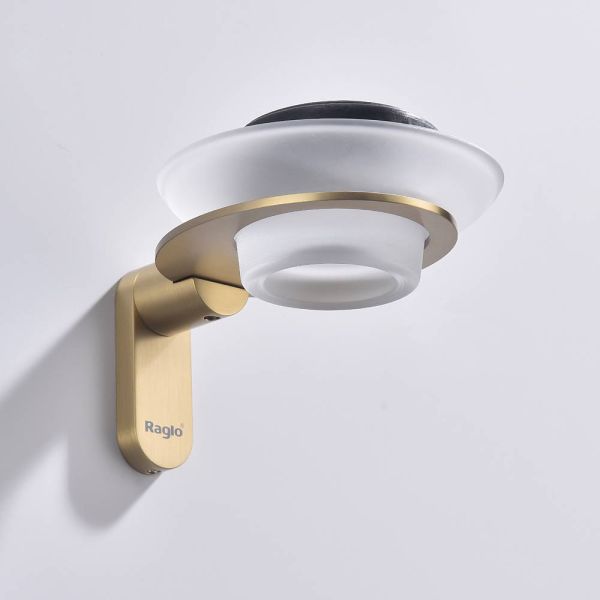 Raglo R300.02.03 Мыльница стеклянная с держателем. Форма округлая, цвет - сатиновое золото, полуматовое покрытие. Крепление в комплекте.
