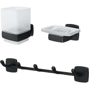 Набор аксессуаров для ванной AM.PM Gem AK90B1903B черныйОткройте для себя стиль и функциональность с набором аксессуаров для ванной AM.PM Gem AK90B1903B. Этот современный набор идеально подходит для создания гармоничного и элегантного интерьера. Сочетая в себе эстетически привлекательный черный матовый цвет и высококачественные материалы, такие как цинк и стекло, данный набор аксессуаров станет незаменимым элементом вашей ванной комнаты.