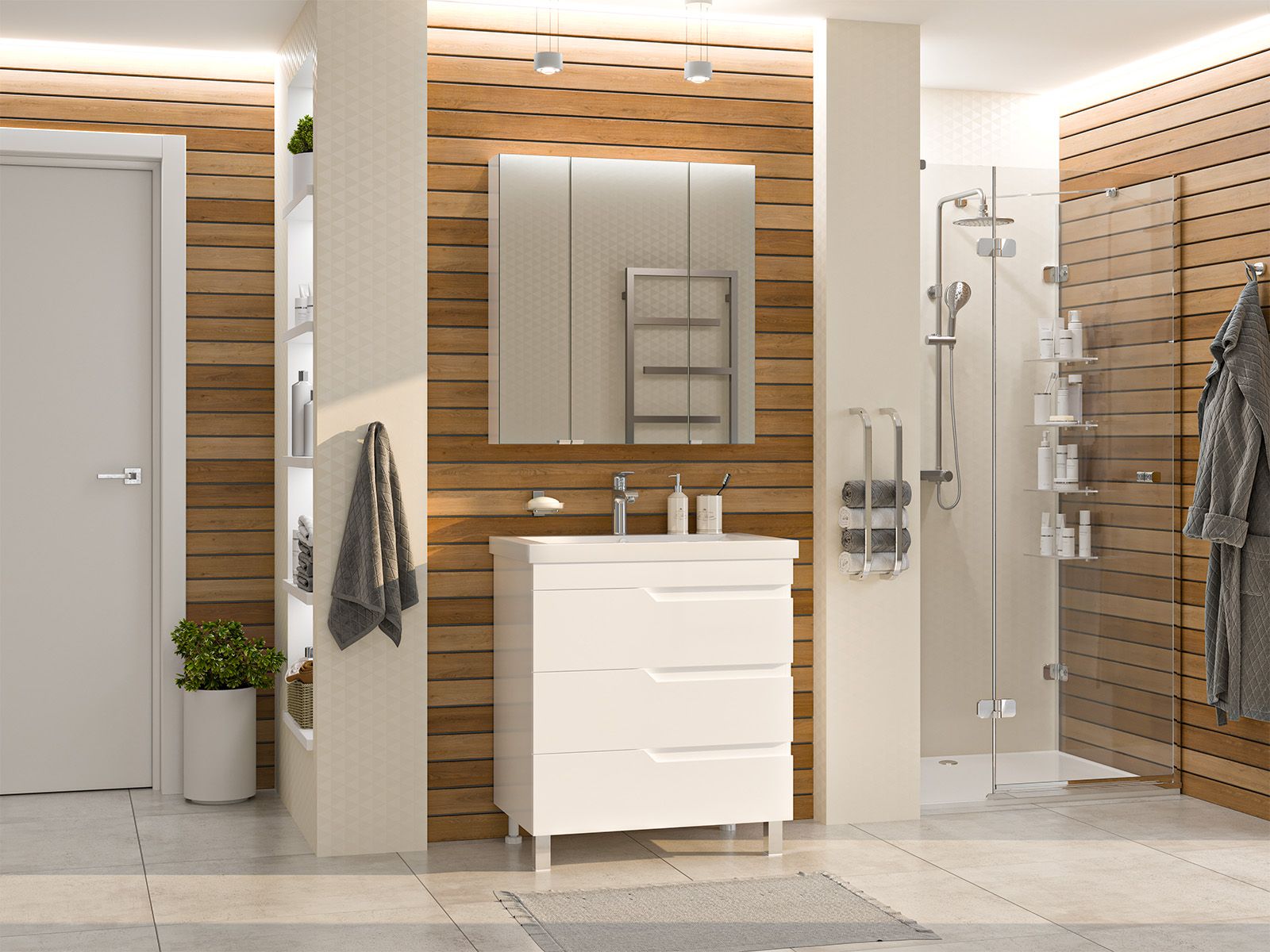 Напольная тумба под раковину – это не просто элемент мебели, но настоящее произведение искусства, которое сочетает в себе функциональность и изысканный дизайн. Изготовленная из высококачественных материалов, она гарантирует долговечность и устойчивость к воздействию влаги.Удобная система хранения позволяет размещать все необходимое для гигиенических процедур, а её продуманные размеры отлично вписываются даже в небольшие помещения. Стильные ручки и элегантные фасады придают тумбе особый шарм, а разнообразие цветовых решений позволит выбрать модель, соответствующую любому интерьеру – от классического до модерн.Мягкие линии и непринужденные формы делают тумбу неотъемлемой частью ванной, превращая её в любимое место для отдыха. Совершенное сочетание эстетики и практичности позволяет создать гармоничный и стильный интерьер, что делает напольную тумбу для ванной комнаты идеальным аксессуаром для любого дома
