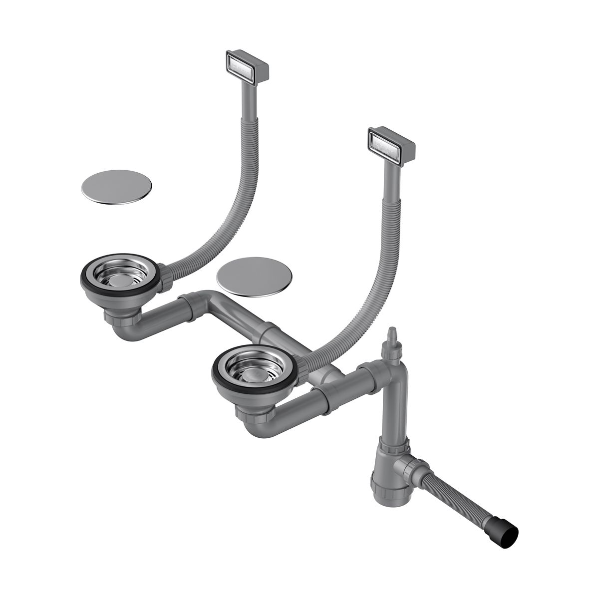 Арматура для двухчашевых моек с прямоугольными переливами, декоративными решетками и декоративными накладками. Подходит для моек из серии AKISAME.