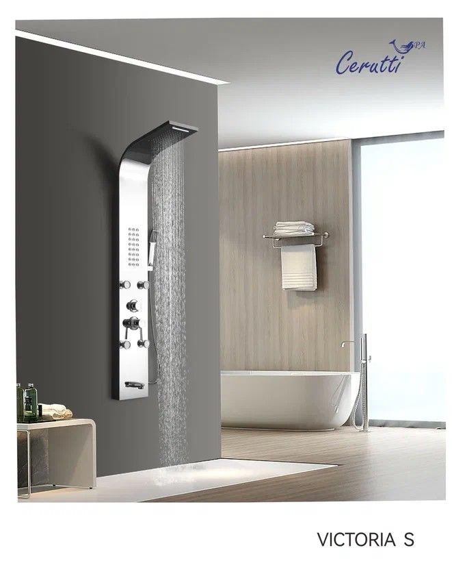 Комфорт ванной комнаты формируется современными элементами обустройства помещения. Поэтому для создания уютной атмосферы необходимо внимательно отнестись к выбору сантехнического оборудования. Сделать вашу ванную комнату не только эргономичной, но и функциональной, поможет душевая панель.Душевые панели становятся все более популярными, так как предлагают роскошные SPA процедуры в комфорте вашей собственной ванной комнаты. Эти изящные и стильные устройства обладают целым рядом функций, которые призваны улучшить ваши впечатления от принятия душа.Также душевые панели являются отличным решением для помещений любых размеров: они компактные, функциональные, удобные в управлении и эксплуатации. Душевые панели не требуют трудоёмкого ухода и являются отличной альтернативой классическим смесителям с ручной лейкой, душевым стойкам или кабины с гидромассажем.Трендовые душевые панели бренда Ceruttispa отличаются высоким качеством, современным дизайном, многофункциональностью, надежностью и долговечностью. Они будут прекрасно смотреться в любом интерьере, а качественный материал исполнения - нержавеющая сталь - прослужит долго, сохранив свои эстетические характеристики. Удобная и многофункциональная душевая панель VICTORIA S предназначена для установки внутри душевых уголков, ограждений, а также совместно с ванной.Конструкция панели включает в себя верхний и ручной душ, а также держатель для аксессуаров. Излив оснащен аэратором, который снижает расход воды легко очищается.Внимание! Производитель оставляет за собой право вносить изменения в конструкцию и комплектацию моделей без предварительного уведомления!Особенности: