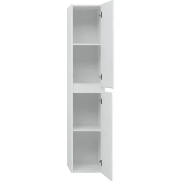 Шкаф-пенал для ванной Aquanet Nova Lite белоснежного цвета из влагостойкой ламинированной древесно-стружечной плиты выглядит нарядно. При ширине всего 35 см в нем, тем не менее, поместятся полотенца, банные халаты  или дополнительные пеномоющие средства, для которых найдется место на четырех полочках, скрытых от посторонних глаз за двумя дверцами, оборудованными петлями с доводчиками. Пенал универсальный. В базовой комплектации он предусматривает открывание в правую сторону, но при необходимости фасады можно перевесить для левого открывания.можно заказать дополнительно.