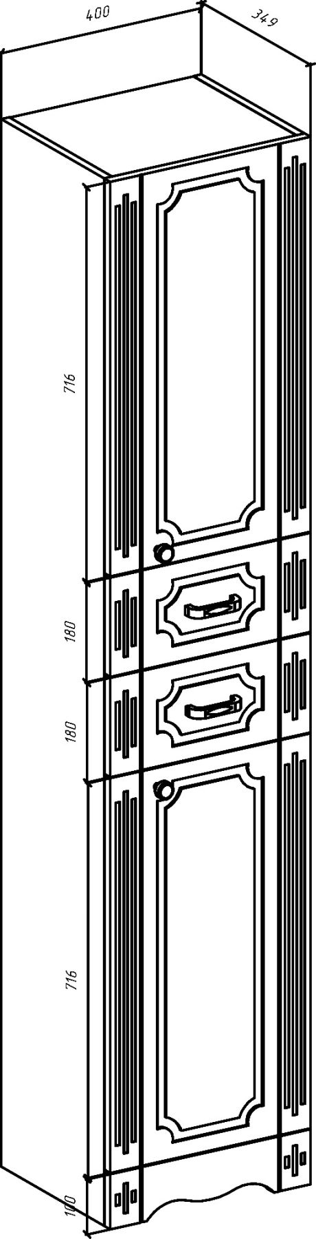 Пенал Bellezza Кантри 40см белый 00000006178