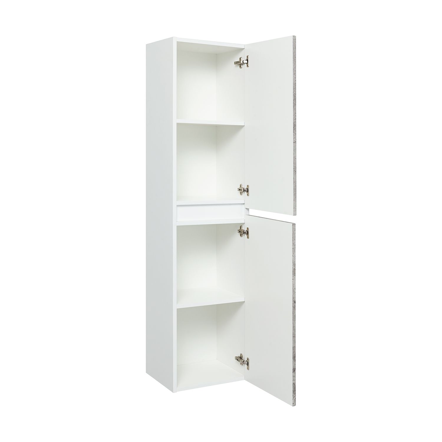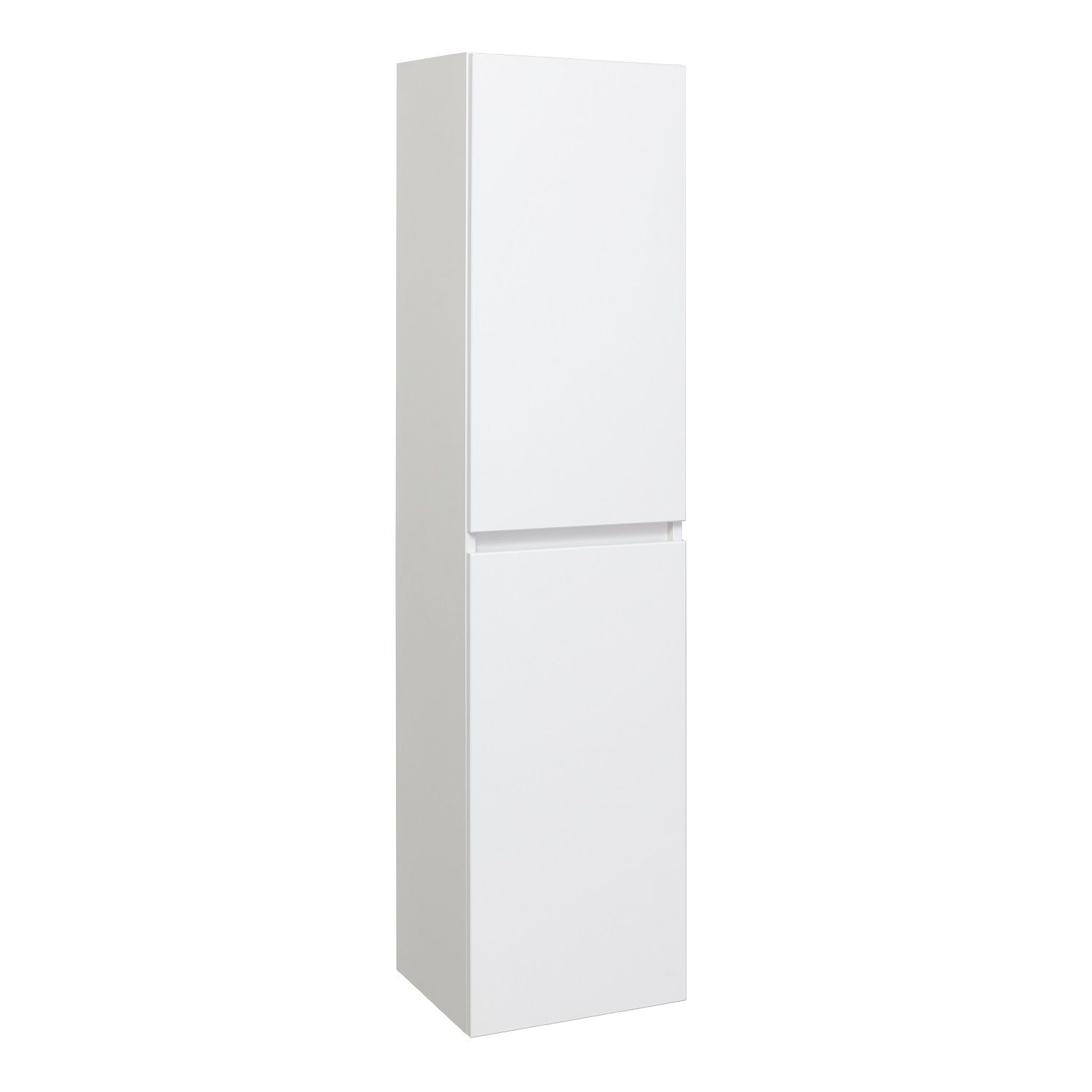 Шкаф-колонна подвесной с двумя отделениями и распашными дверками. В каждом отделении по одной встроенной полке. Петли со встроенным доводчиком, подвес -2шт. Шкаф универсальный (для смены ориентации товар поворачивается на 180 градусов). Корпус изделий изготовлен из белого ЛДСП, а фасады облицованы белой пленкой ПВХ.