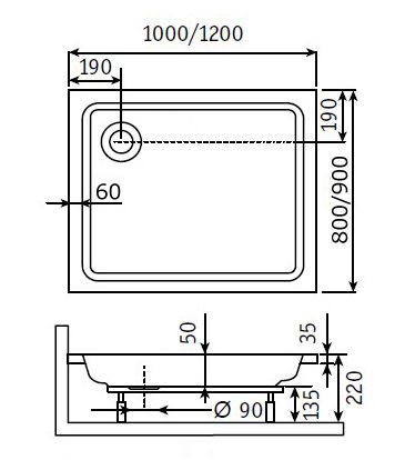 Поддон для душа RGW STYLE PR 900х1200х220