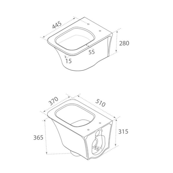 • Укороченный унитаз: