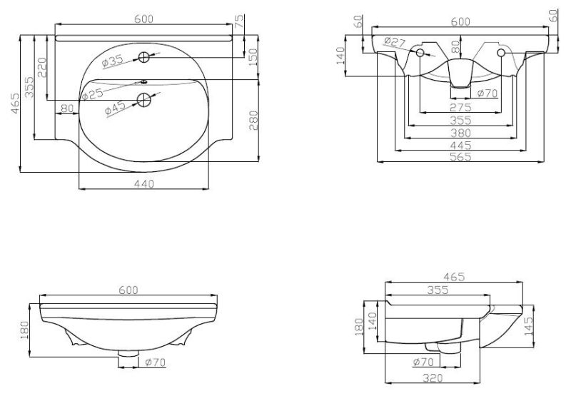Раковина мебельная, керамическая, 60 см, полувстроенная, белый, глянец Подробнее