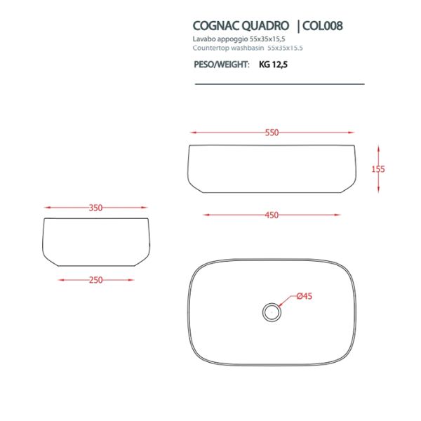 Раковина ArtCeram Cognac COL008 36 00 notte 41.5 смArtCeram Cognac COL008 36 00 Раковина накладная на 55 см, размер 55x35хр15,5 см. Без перелива и плоскости под смеситель. Монтаж накладной на столешницу. Цвет notte.