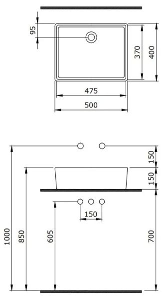 - Отверстия под смеситель:нет