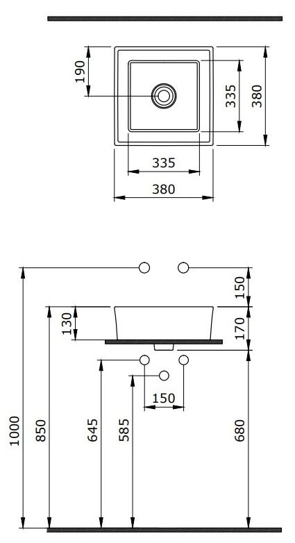 Накладная раковина из санфарфора Berges Mascon размером 38х38х12,5 см.Квадратной формы, без отверстия под смеситель, глянцевая белая.Керамическая крышка слива в комплекте.