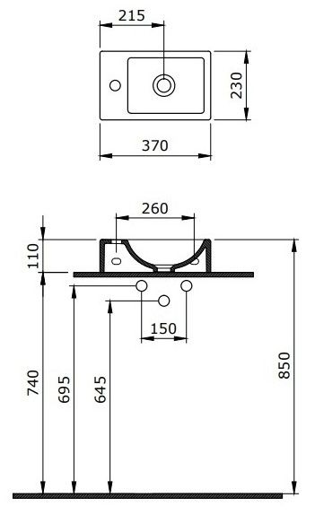 - Отверстия под смеситель:1