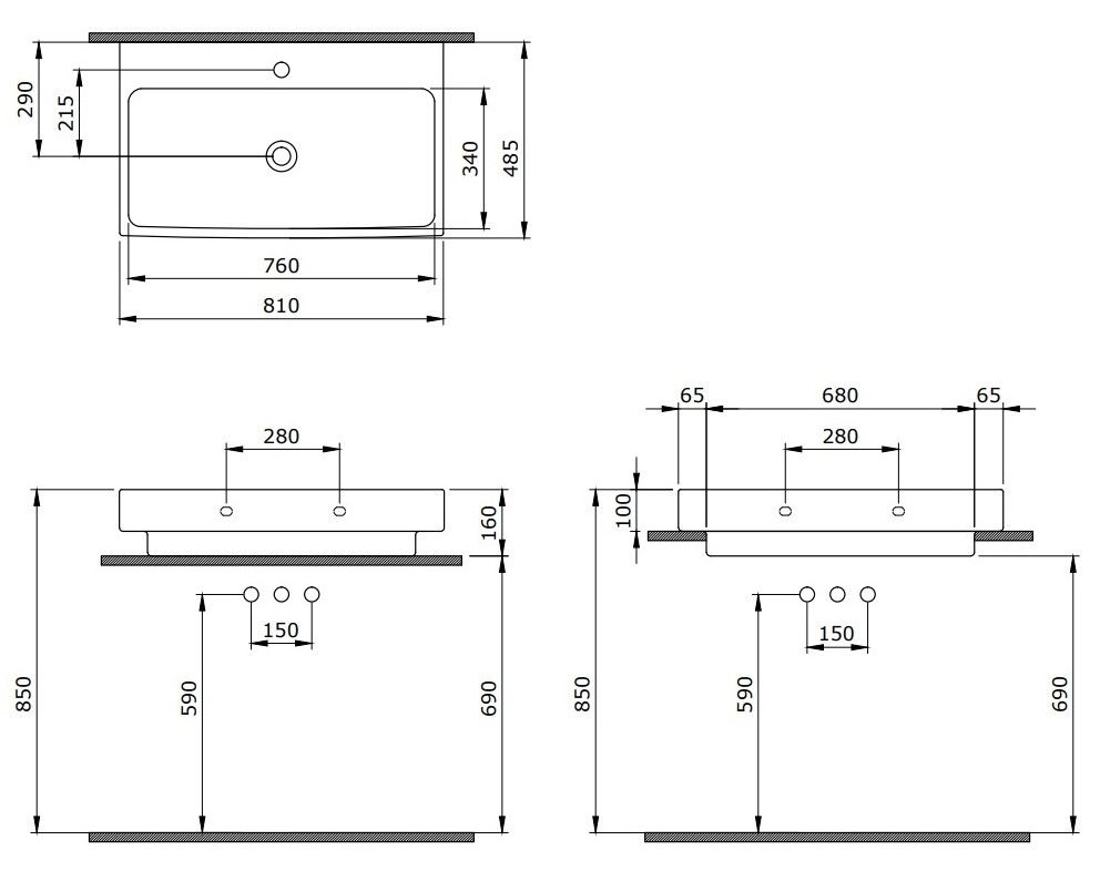• Отверстия под смеситель: