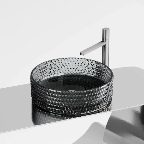 Умывальник чаша накладная круглая (цвет чёрный) Cristal 360*360*112мм