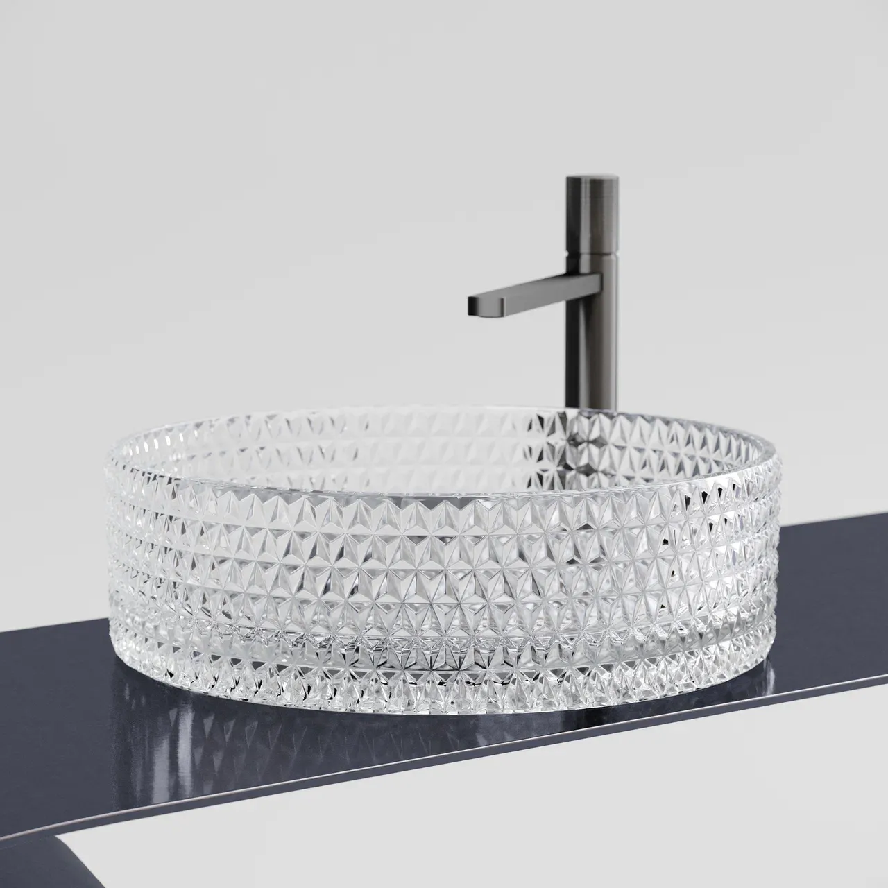 Умывальник чаша накладная круглая (прозрачная) Cristal 360*360*112мм