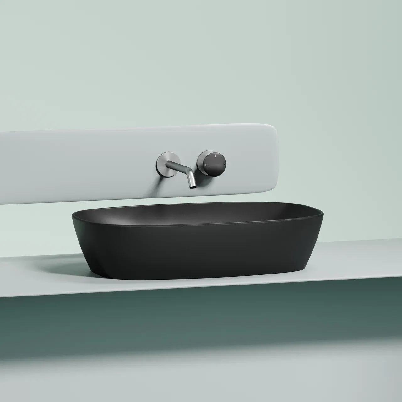 Умывальник чаша накладная овальная (цвет Чёрный Матовый) Element 600*380*138мм
