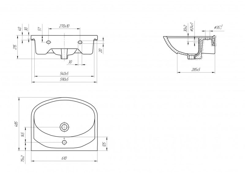 • Отверстия под смеситель: