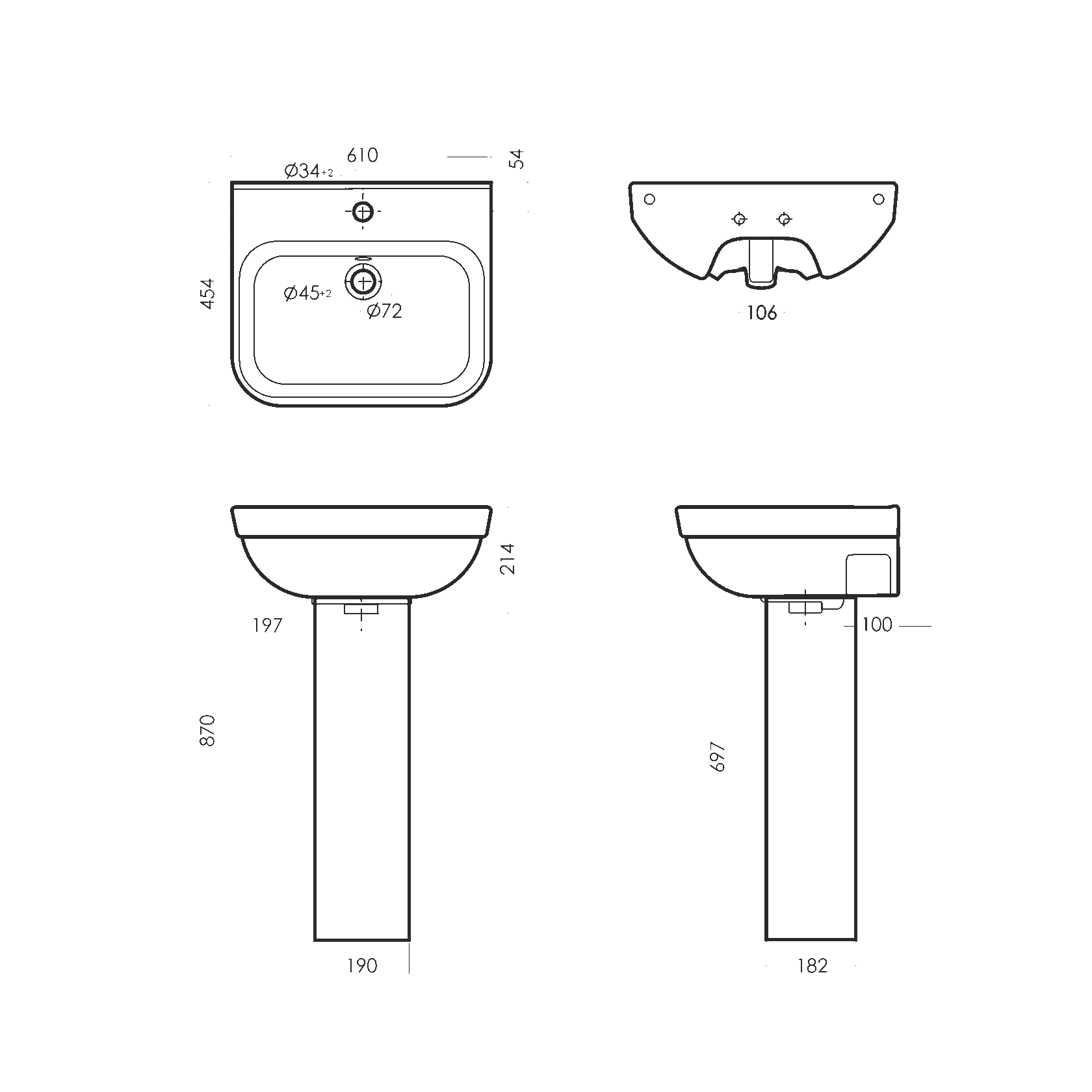 Раковина Sanita Luxe Next WB.PD/Next/60-C/WHT.G/S1 60 см