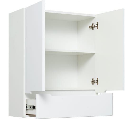 Шкаф навесной с двумя распашными дверками и нижним выдвижным ящиком. За дверками - одна внутренняя полка. Петли со встроенным доводчиком, ящик на шариковых направляющих полного выдвижения.