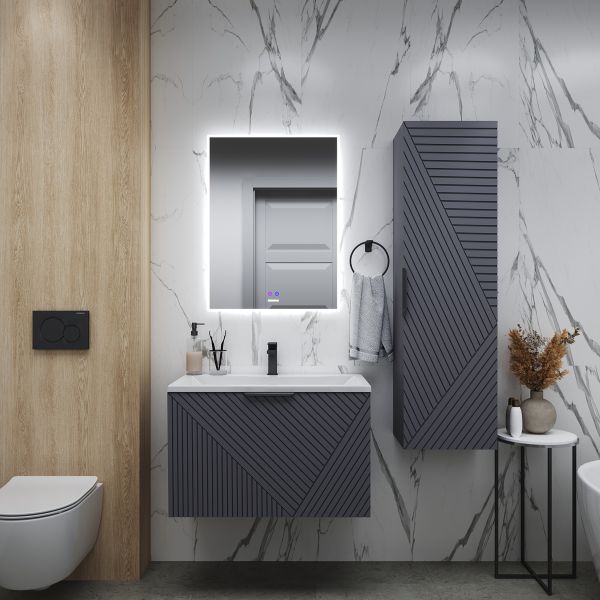 Корпус и фасады выполнены из влагостойкого МДФ, покрытого матовой краской. Это делает пенал прочным, устойчивым к влаге и безопасным для использования в условиях ванной комнаты.
