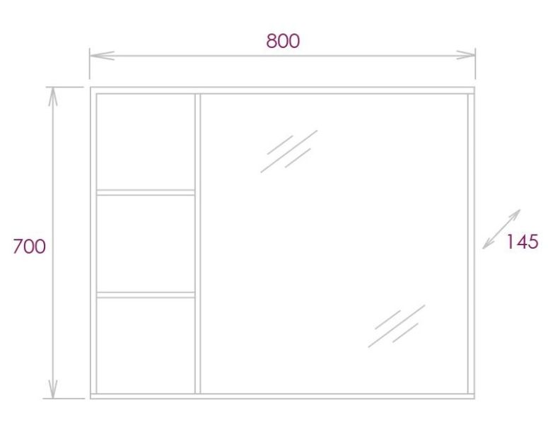 Зеркальный шкаф выполнен из ЛДСП, устойчивой к механическим воздействиям, перепадам температур и высокой влажности.