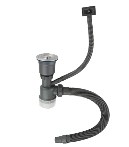 GF-01 нерж Сифон одинарный  для мойки из нерж. стали, с переливом и корзинкой для мусора