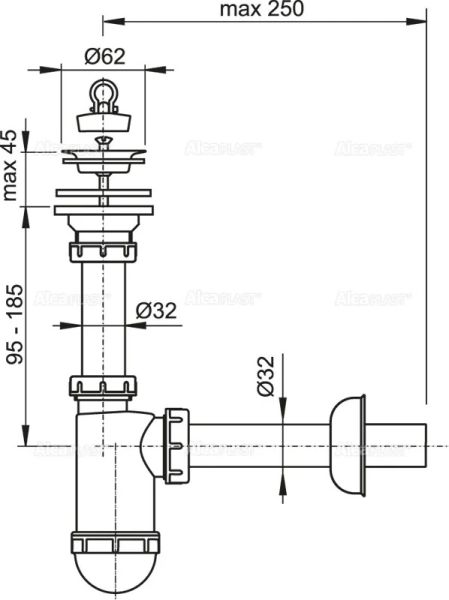 Сифон для раковины AlcaPlast ?32 с нержавеющей решеткой ?63 A411