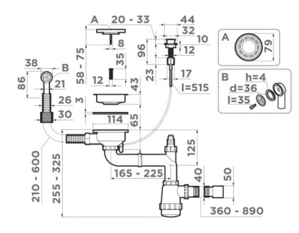 Сифон Omoikiri WK-1-R-A-IN с кнопкой