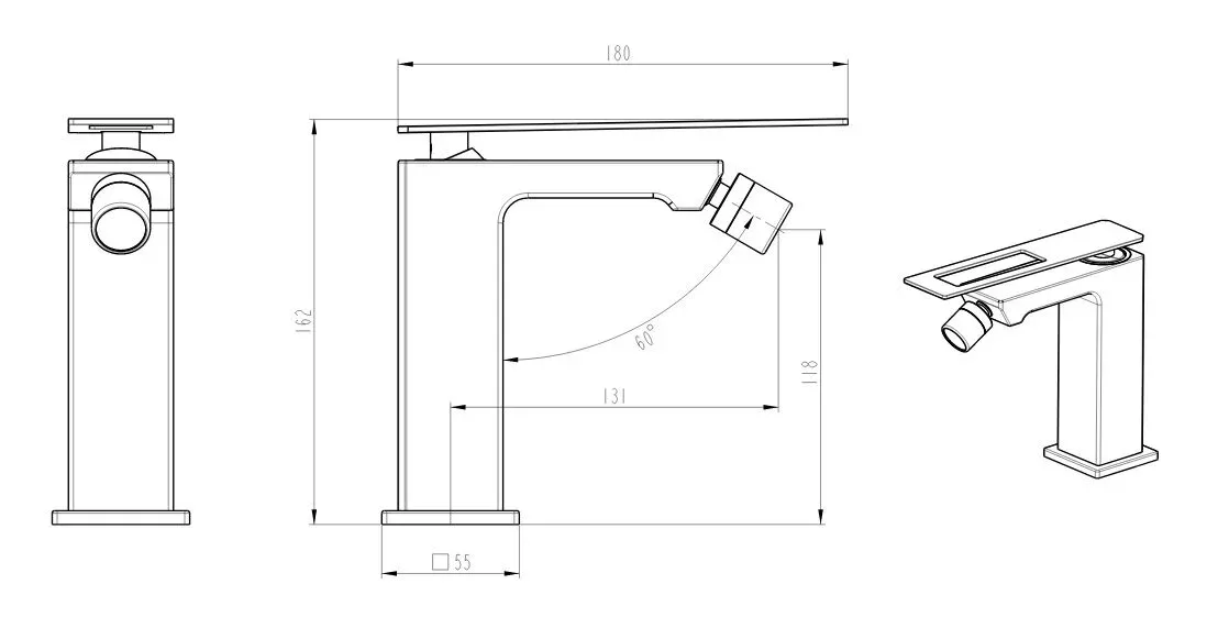 Смеситель Boheme Q для биде, белый, черный, 146-WB.2 Смеситель для биде Монтаж: горизонтальны... Подробнее